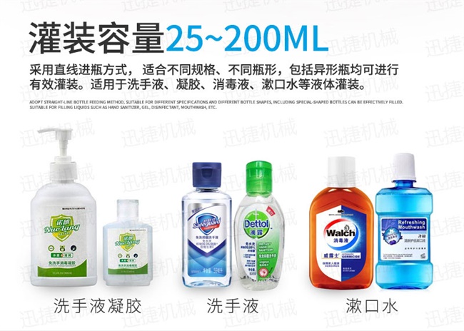 全自動免洗手凝膠灌裝機生產(chǎn)線特點: