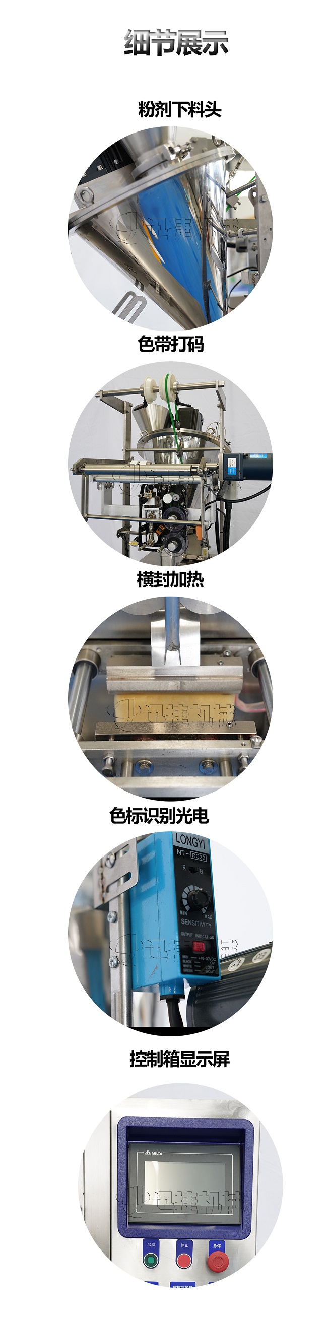 粉劑包裝機(jī),可完成三邊封、四邊封、背封、異形狀袋形,可對(duì)粉末狀狀物料進(jìn)行定量包裝。