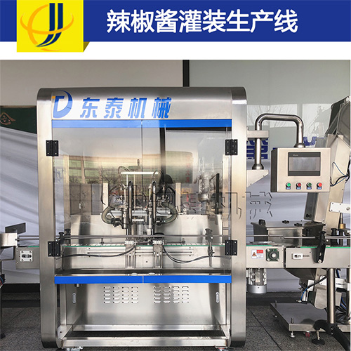 2、大型定量辣椒醬灌裝機輔料添加料可調,精準方便,提高自動化程度。