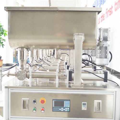 一大功能是灌裝。雖然是只有一個灌裝頭,但是速度可以達到每小時1000瓶左右。這款設備是主要是針對大顆粒物料而設計的,像是花生醬,豆豉醬,大塊的牛肉醬和香菇醬等都不好灌裝,但是現在,我們用自己研發的轉閥更換了之前的設計,這些大顆粒醬料都可以得到較好的灌裝效果,對于流動性差和油料分離的醬料都可以適用。對于那種番茄醬果醬這種比較好灌裝的醬料來說更不在話下。