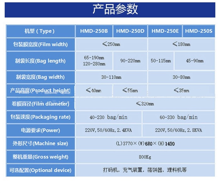 制袋尺寸: 長(zhǎng)70-300mm寬20-120mm高5-60mm